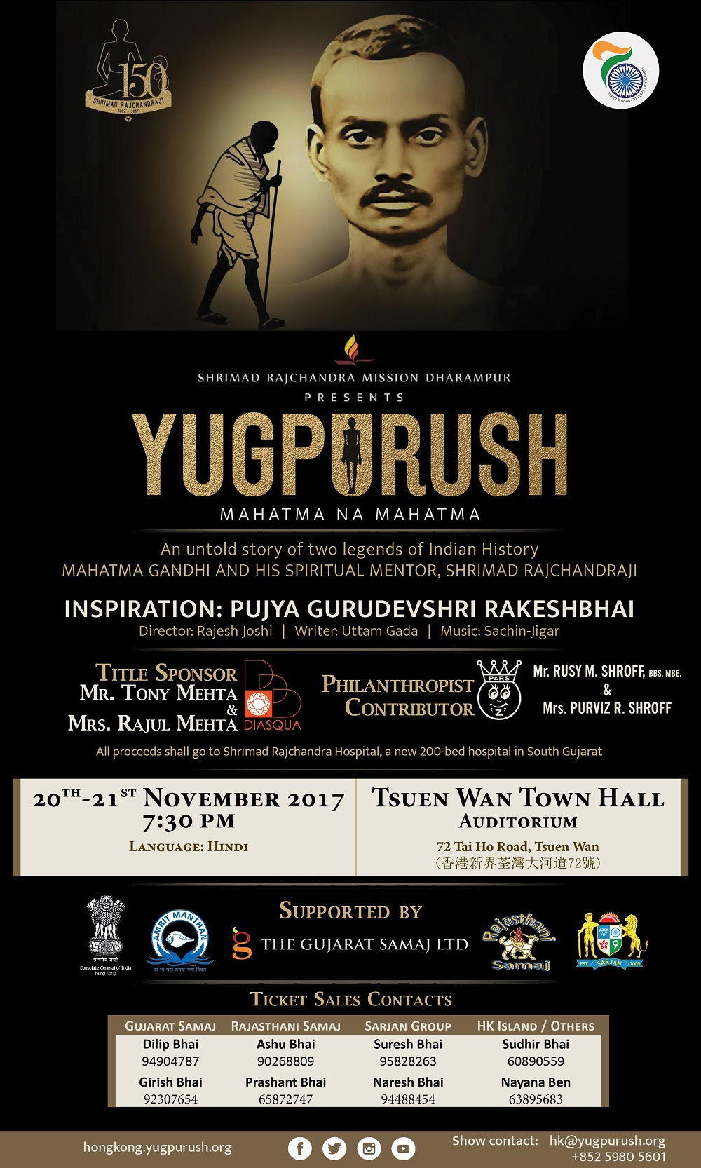 Introducing to you a tribute to two Great Souls - YUGPURUSH - Mahatma ke Mahatma. YUGPURUSH - THE PLAY has enjoyed tremendous success all over India, Canada, UK & USA captivating audiences with more than 800 sellout shows in 275 days. Audiences from diverse backgrounds, ages, and communities have acclaimed this drama. The play is now coming to Hong Kong.