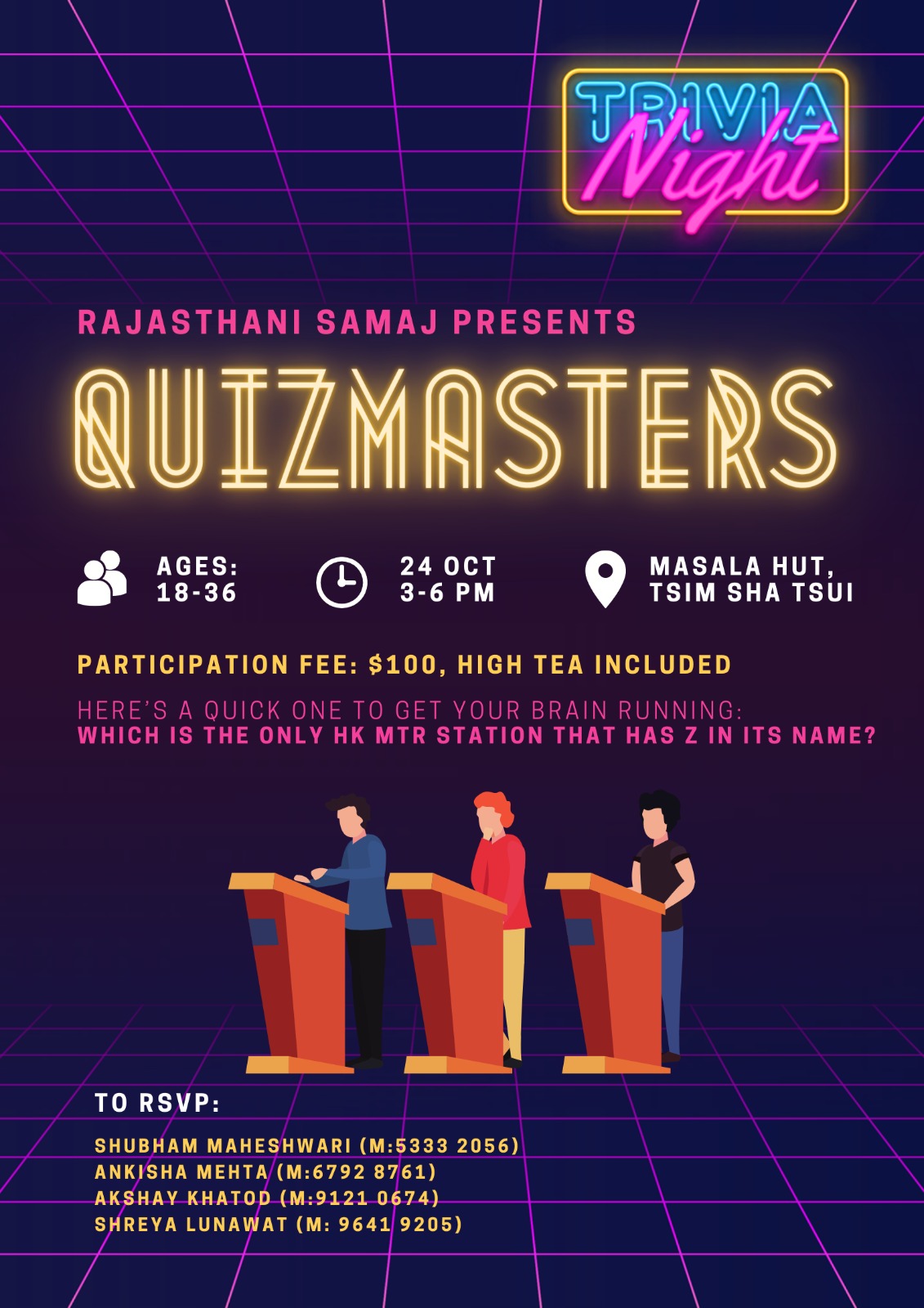 We are proud to present, QuizMasters, a Diwali quiz evening organized by the youth, for the youth. The evening will feature various quiz categories like – Hong Kong, Sports, Bollywood, etc.
